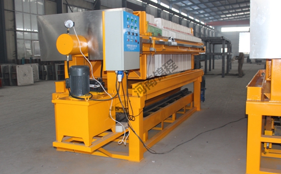 5板框式壓濾機(jī)與廂式壓濾機(jī)結(jié)構(gòu)相同,只是過濾部分是一板一框和濾布組成,板框空間是濾室。