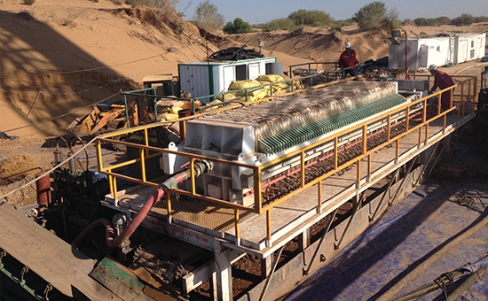 壓濾機(jī)在過濾過程中,由于濾布的毛細(xì)滲漏現(xiàn)象,濾板之間會(huì)有滴漏,這樣即對(duì)環(huán)境造成污染,又增加了壓濾機(jī)下面的儲(chǔ)泥斗中的泥料的含水率,給操作帶來很大麻煩。我公司設(shè)計(jì)的自動(dòng)集液翻板系統(tǒng)可收集濾板滴漏的液體,避免壓濾機(jī)工作現(xiàn)場(chǎng)的污染,也避免了儲(chǔ)泥斗中的已脫水物料被浸潤。