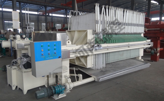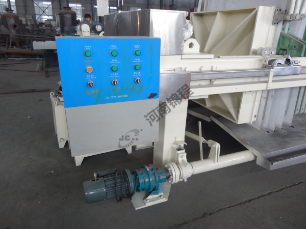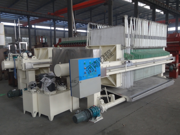 自動曲張振打壓濾機是由機架、濾板、液壓站、自動系統(tǒng)、曲張振打裝置等組成。